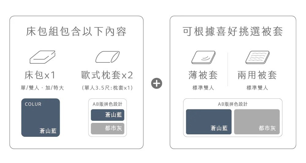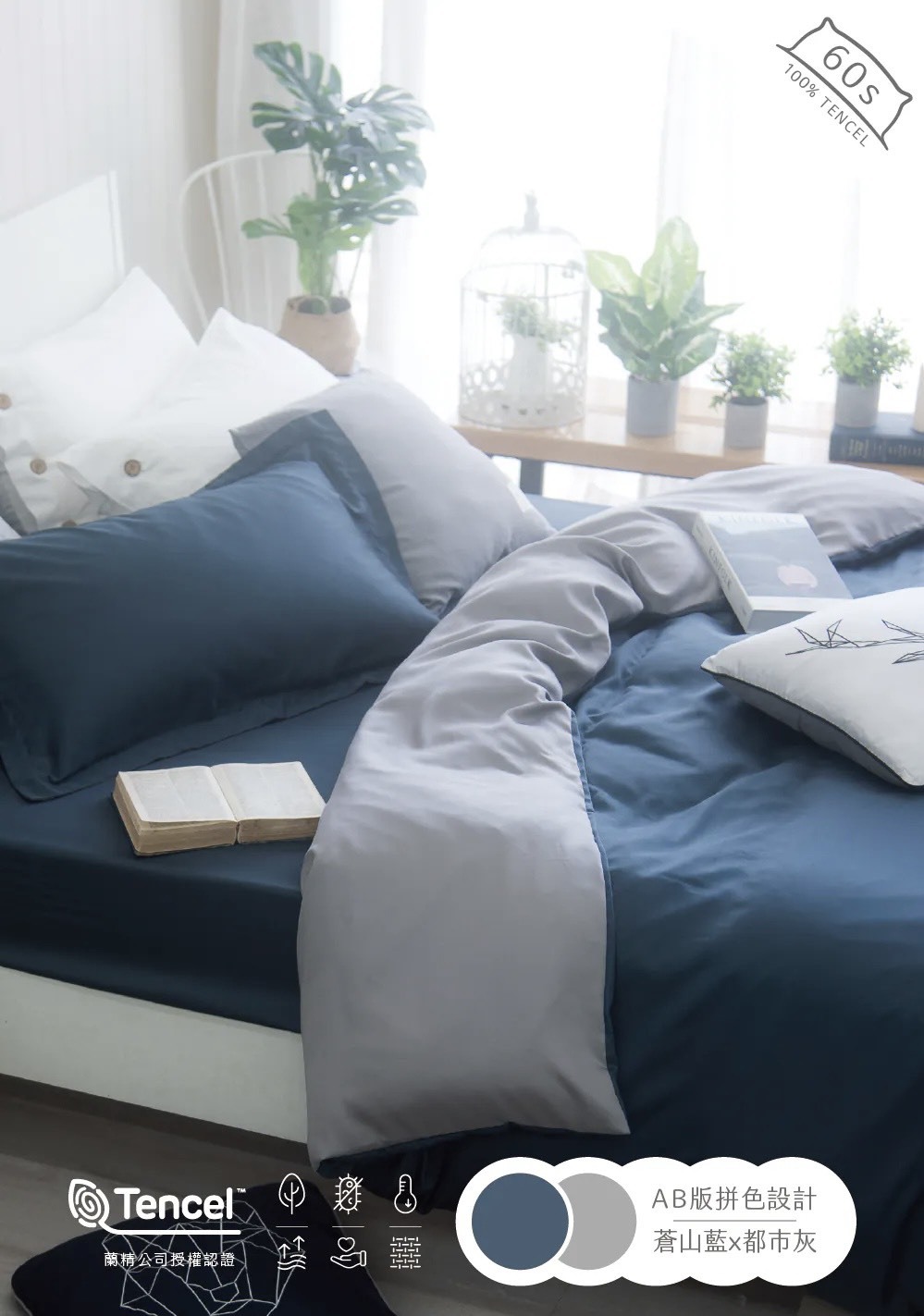 60支天絲薄枕頭套 | 蒼山藍 x 都市灰