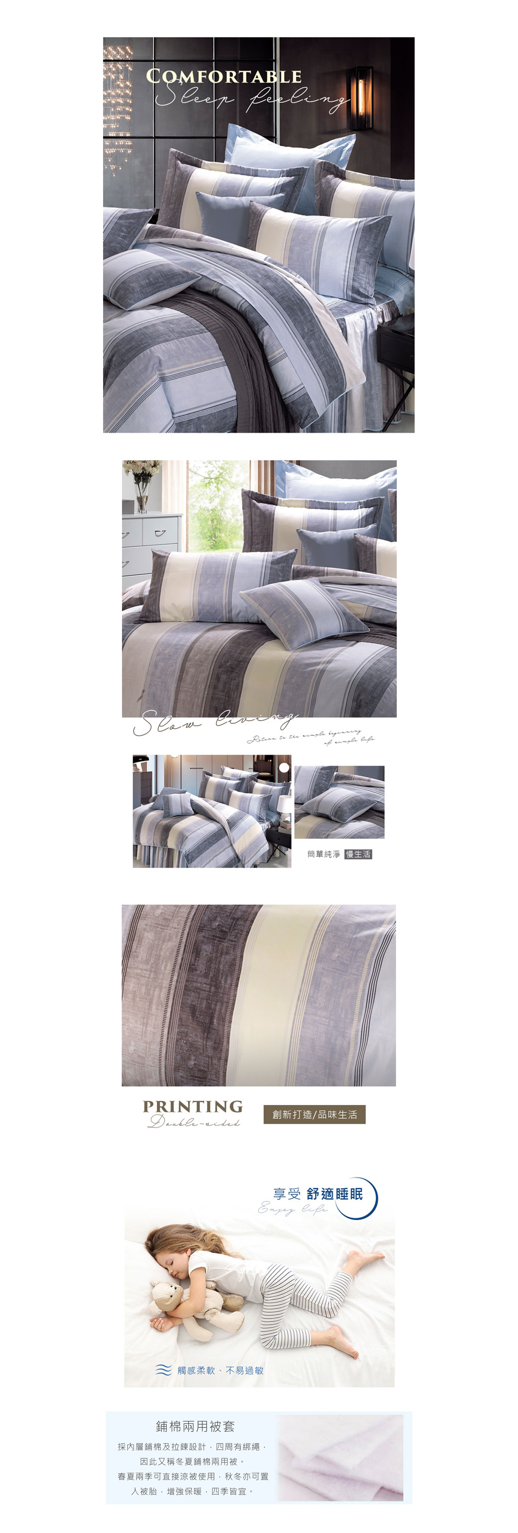 200織精梳棉七件式床罩組 | 2239 亞岱爾 藍 | 鴻宇