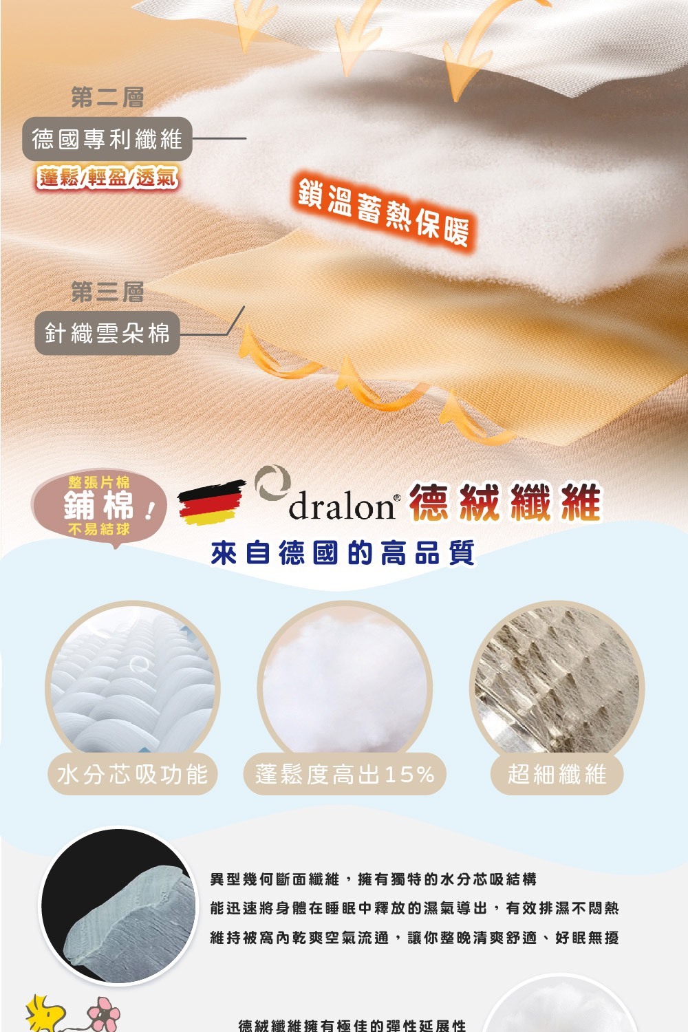 ♡ Dralon® 德絨纖維 有效排濕不悶熱