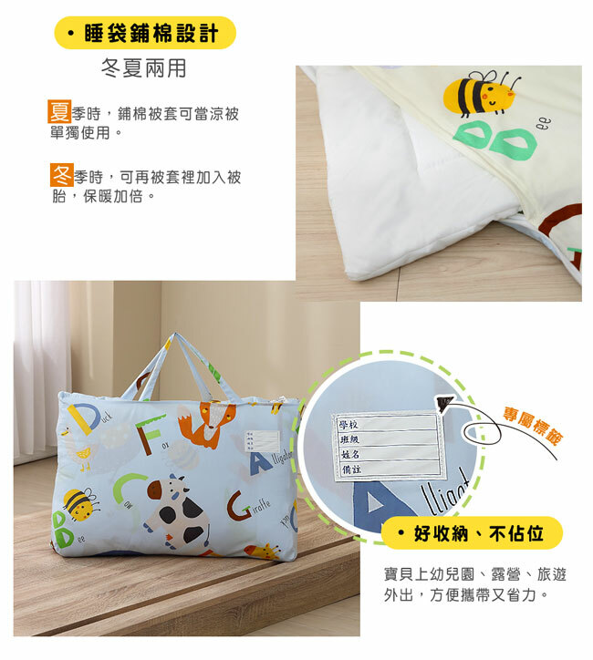 內容件:兒童睡袋x1 + 被胎x1 + 枕芯x1
