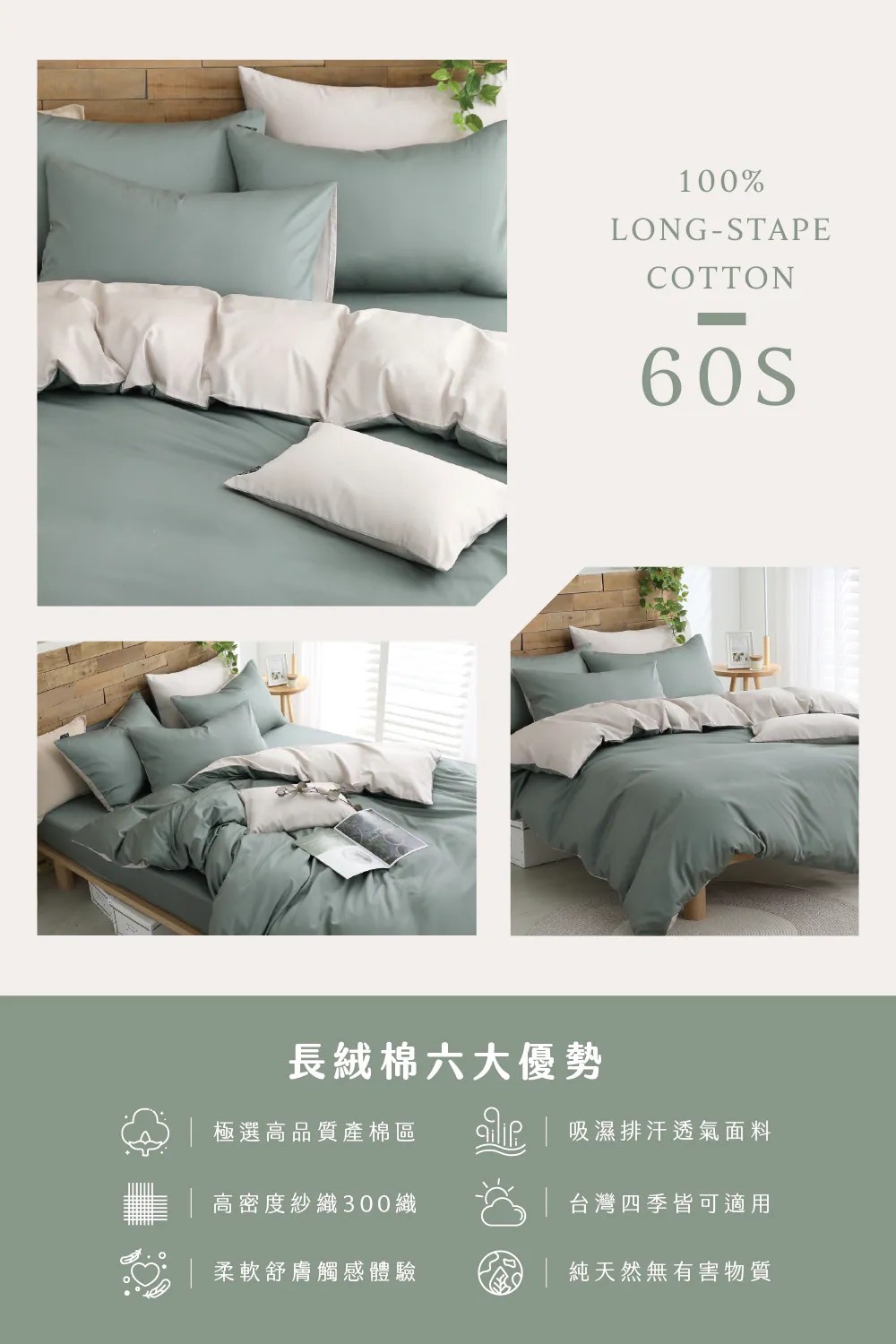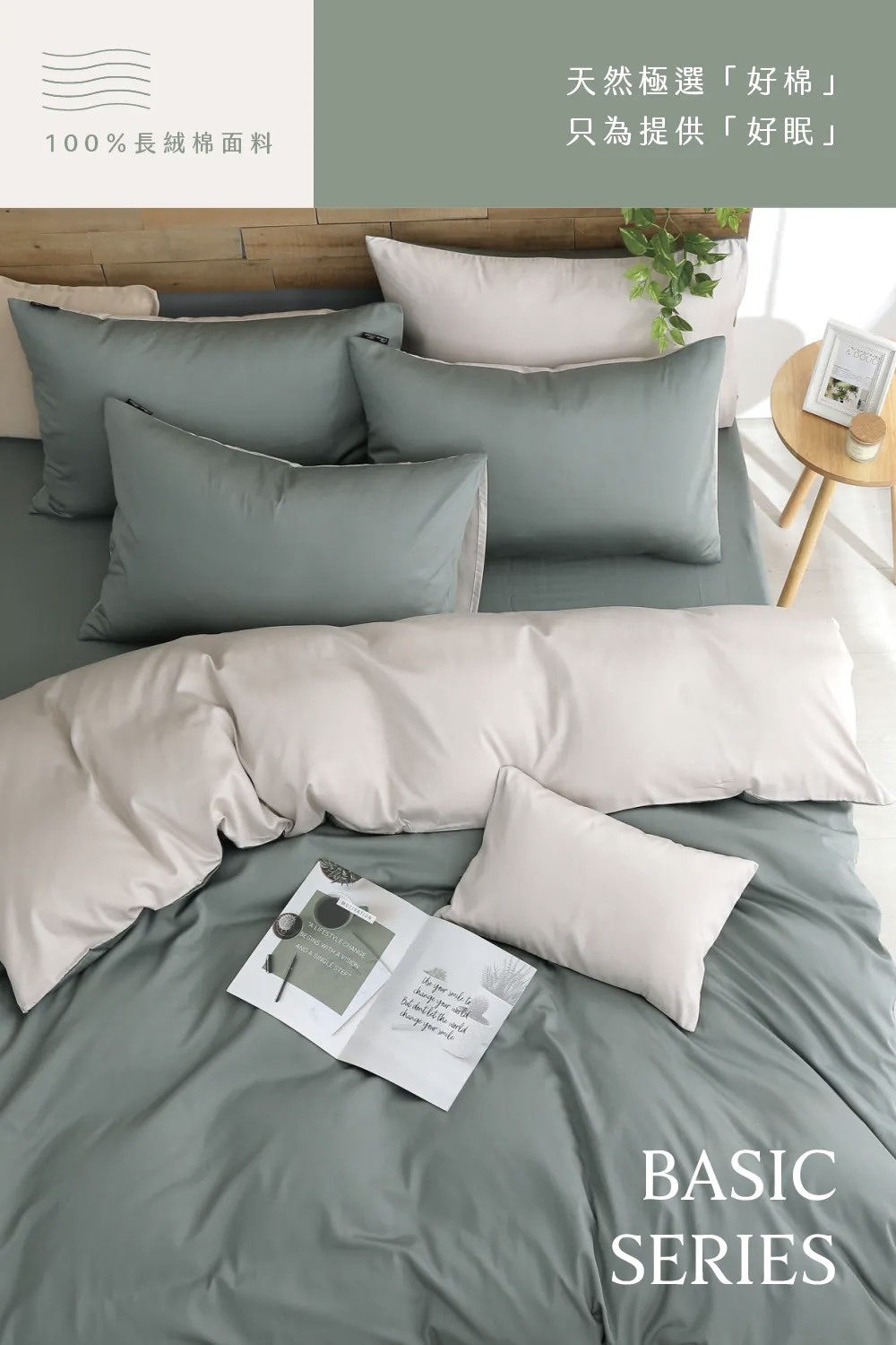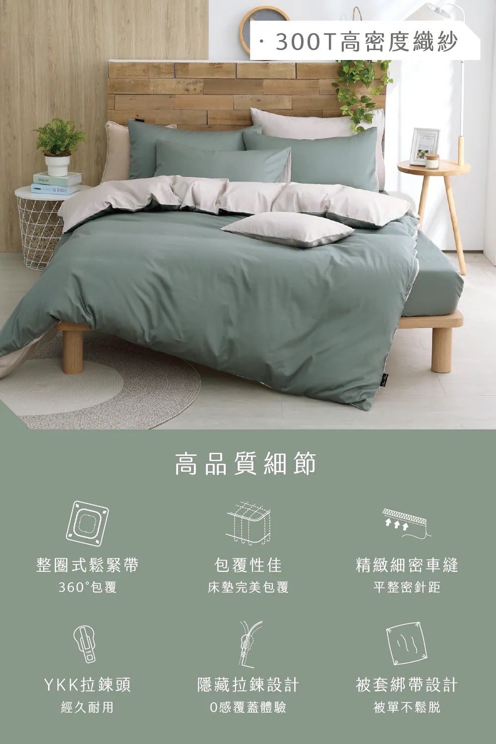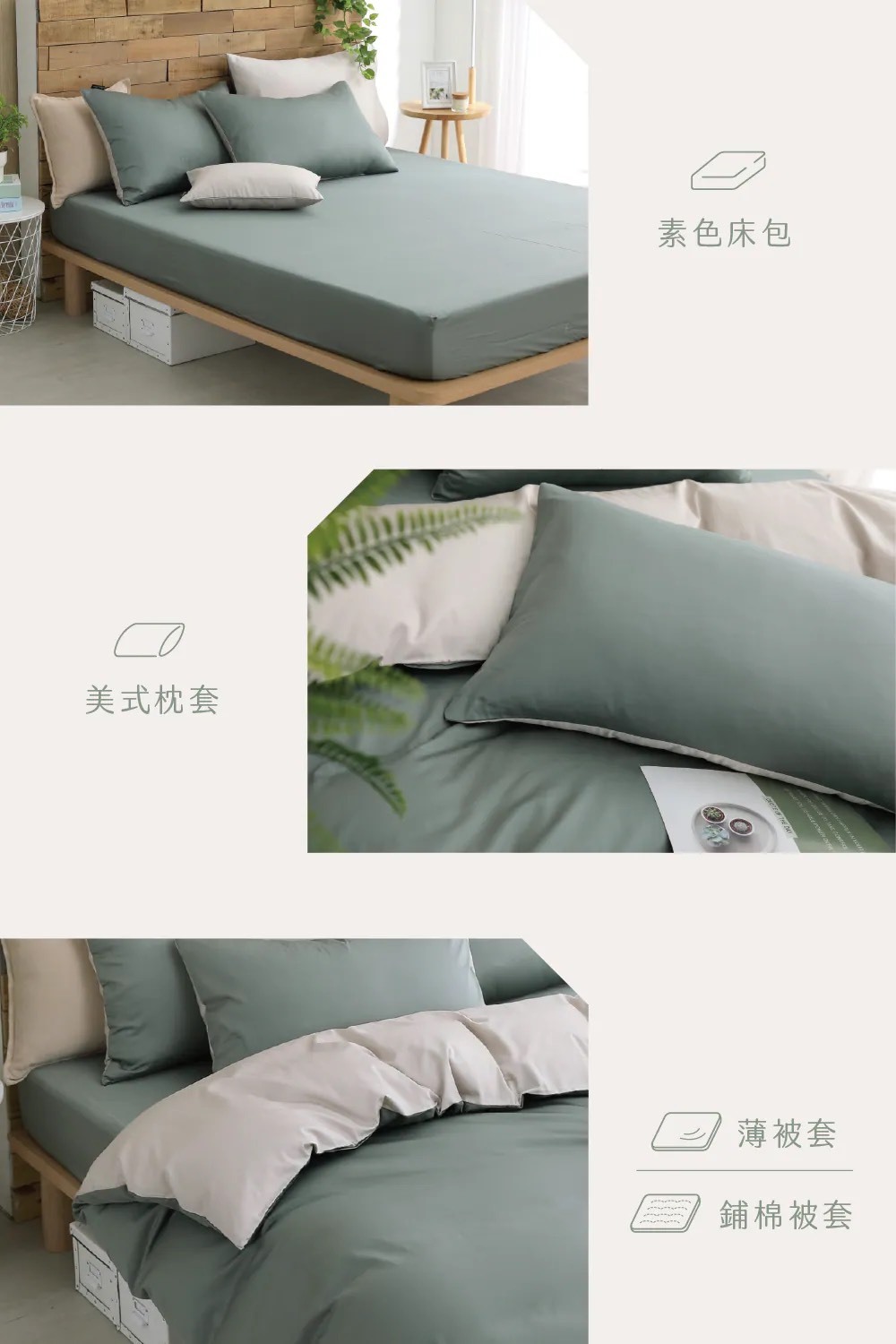 300織長絨棉床包兩用被組 | 軍綠 x 淺米