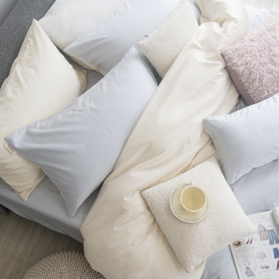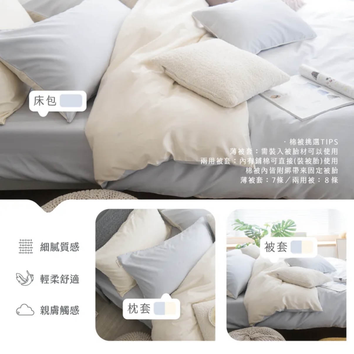 超細旦天絲棉床包兩用被組 | 冰川藍 x 香草黃
