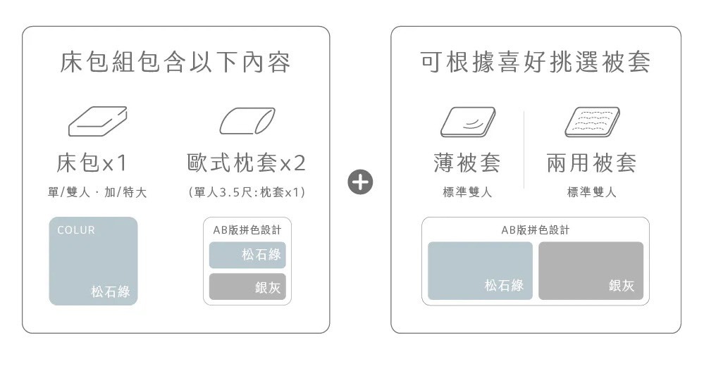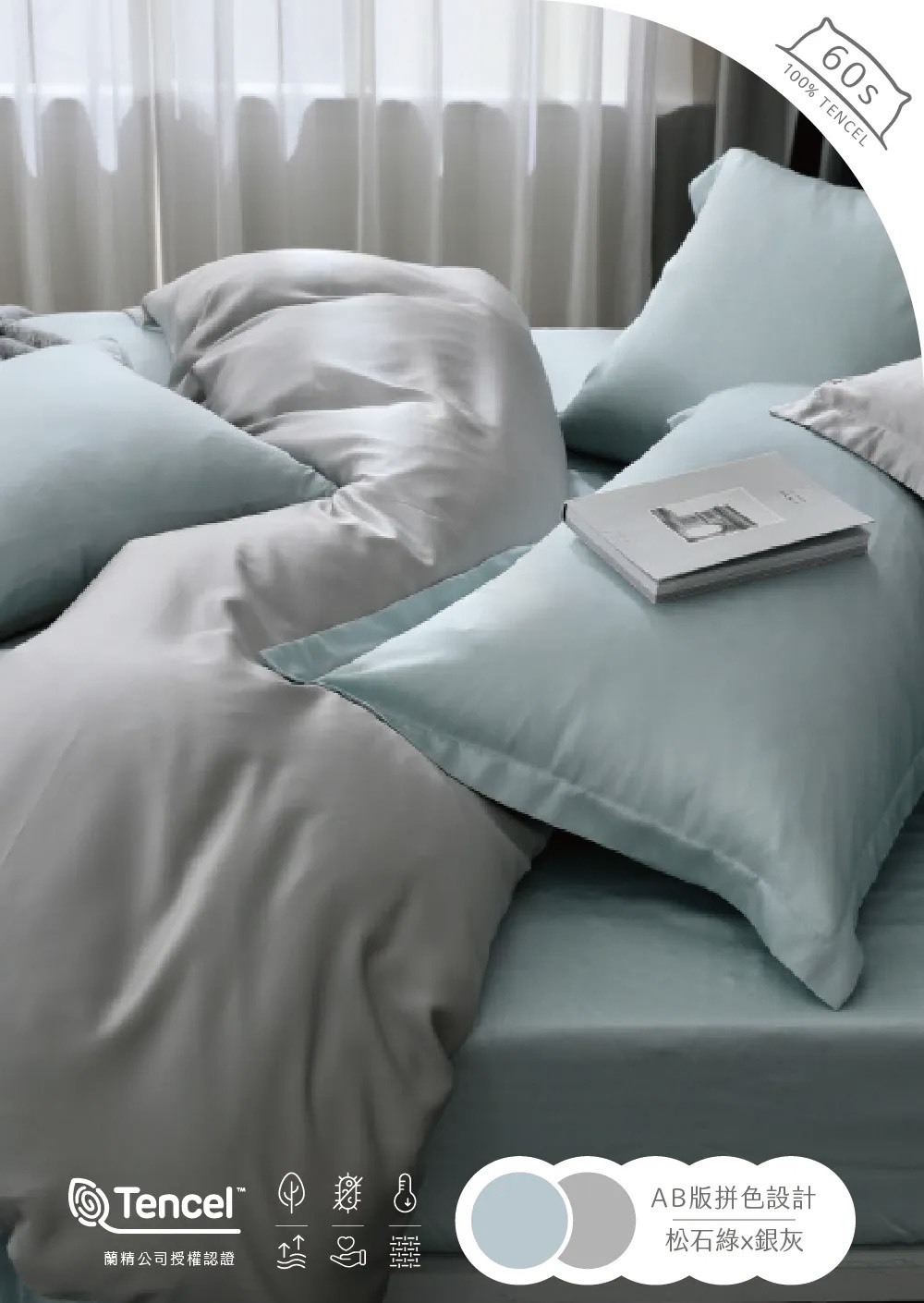 60支天絲薄被單 | 松竹綠 x 銀灰