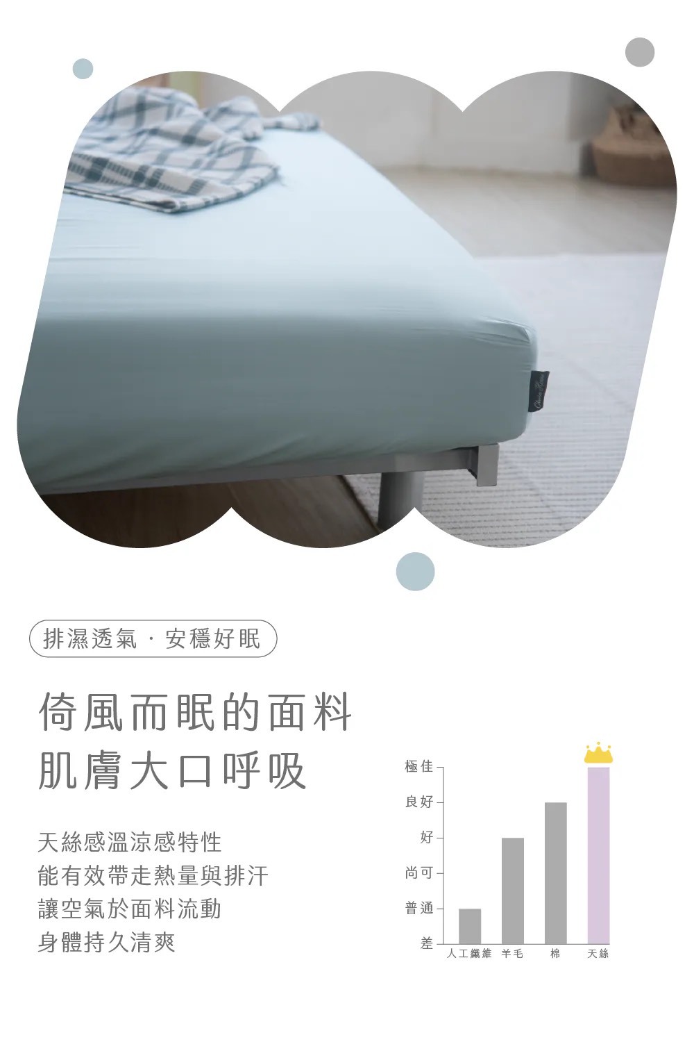 ♡ 天絲有效吸濕排濕,抑止細菌滋生