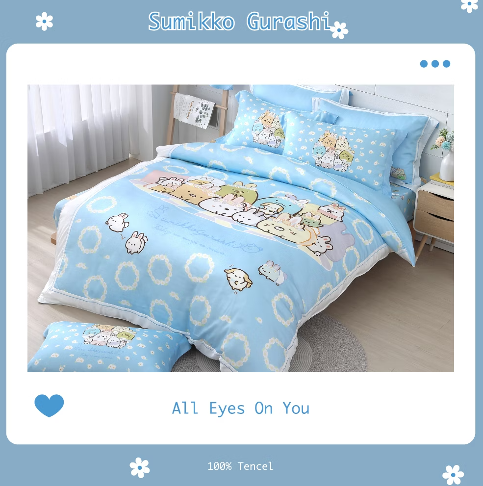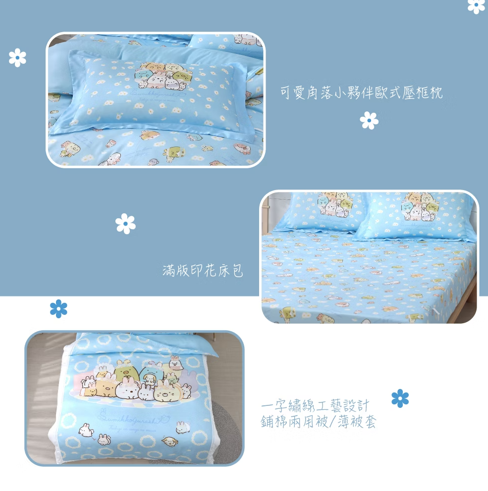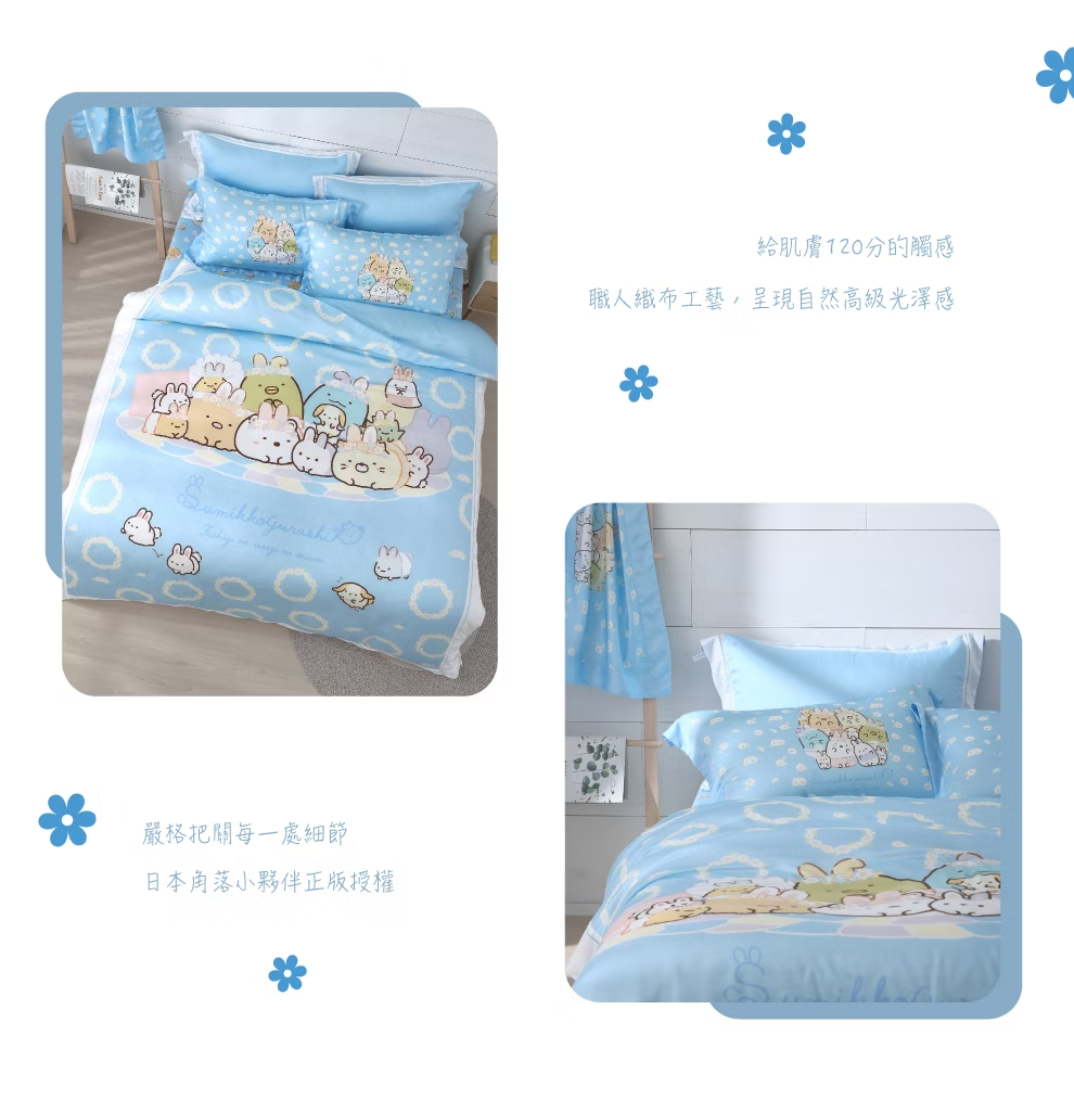 角落小夥伴床包兩用被組 | 萊賽爾天絲| 兔兔草原-大圖藍色