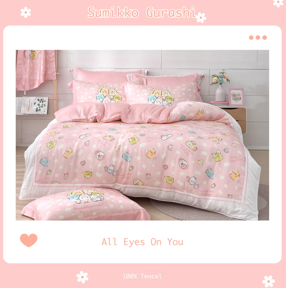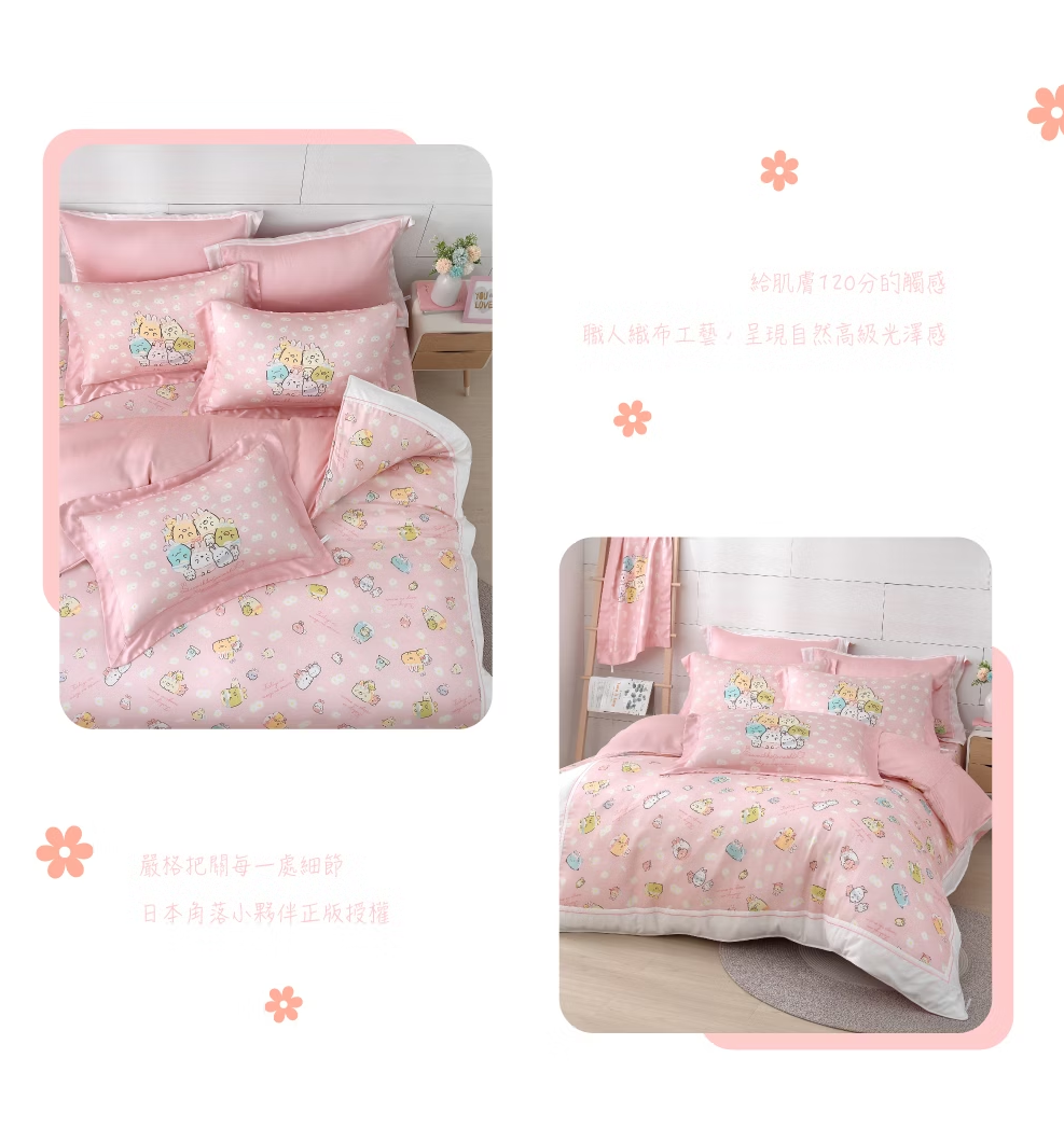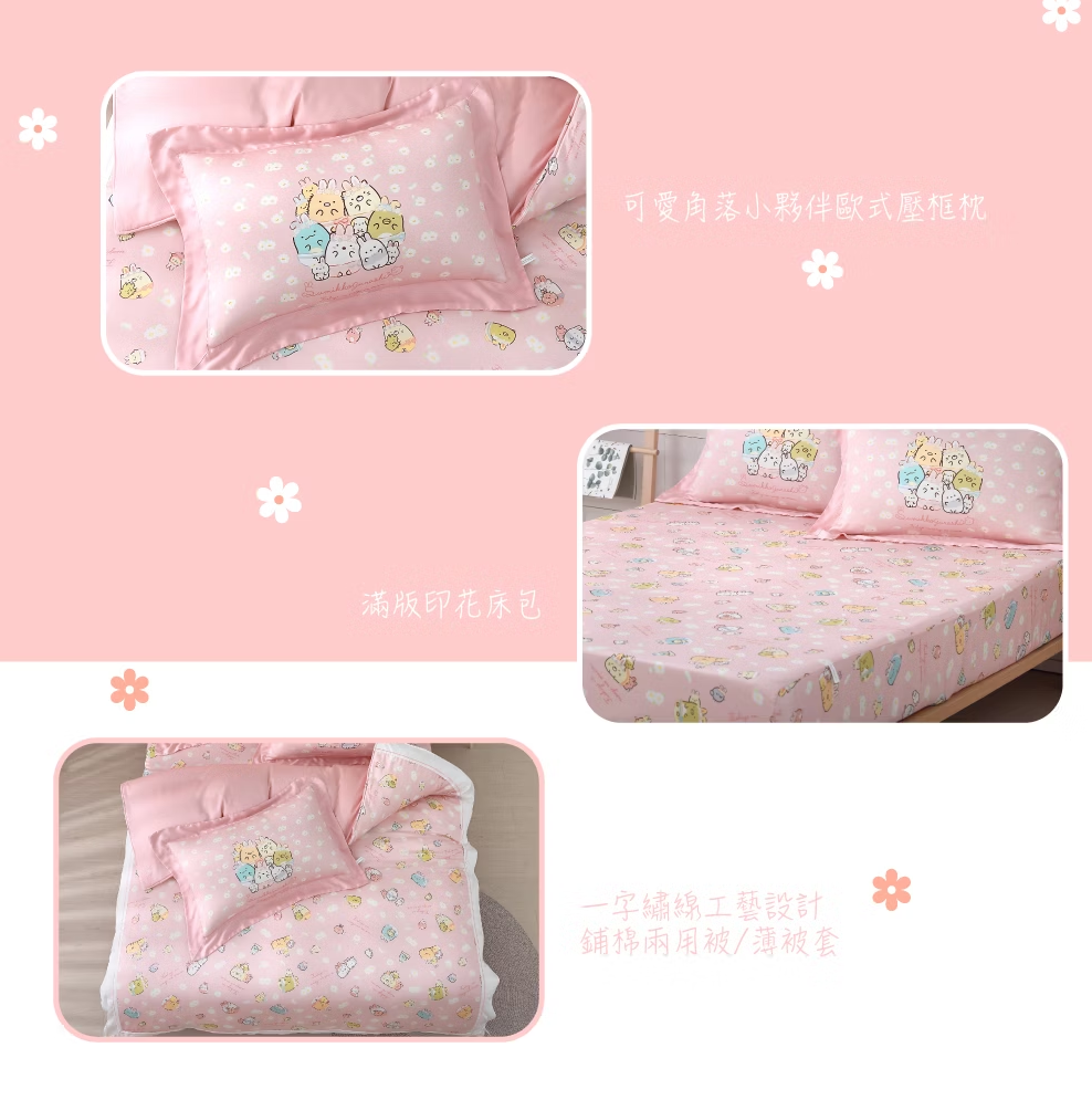角落小夥伴床包兩用被組 | 萊賽爾天絲| 兔兔草原-滿版粉色