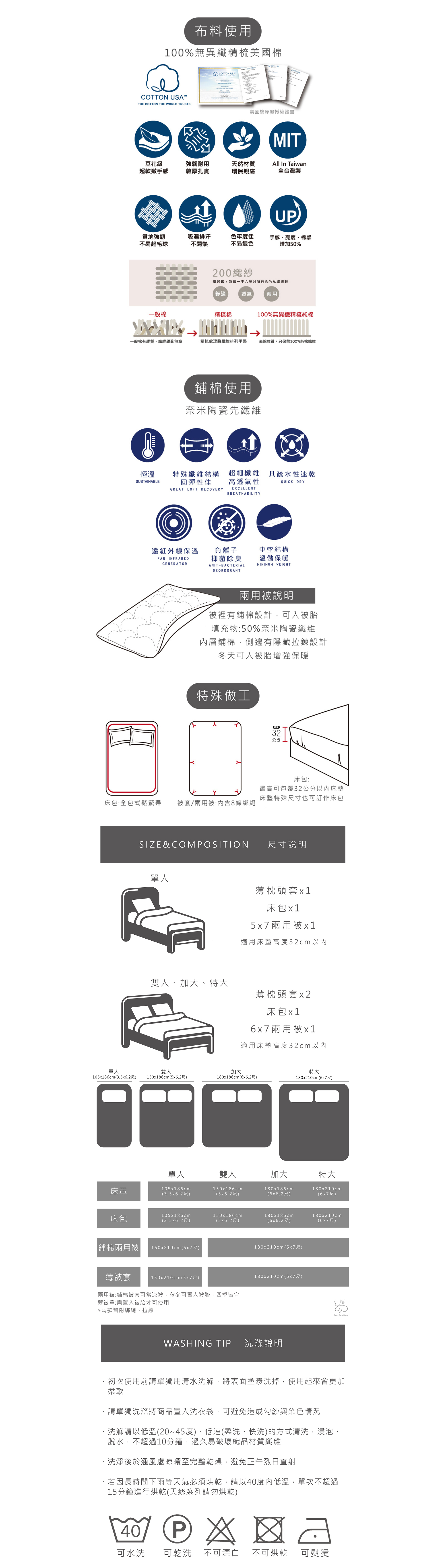 ♡ 奈米陶瓷纖維鋪棉透氣恆溫,負離子抑菌除臭