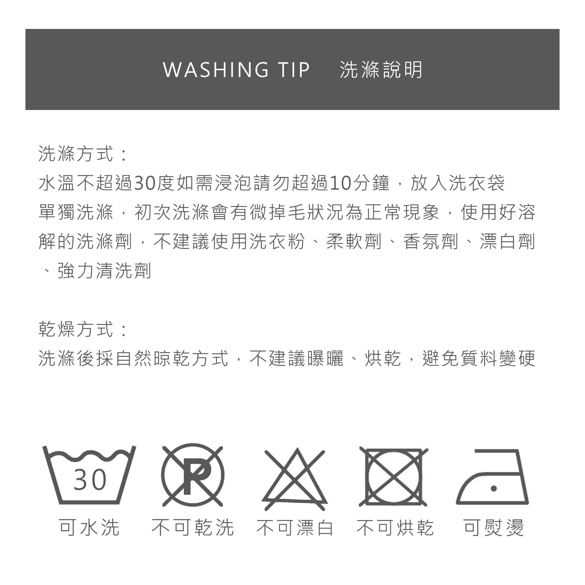 ★ 退貨商品不可下水及異味(香水、煙味、衣櫃芳香劑等)。